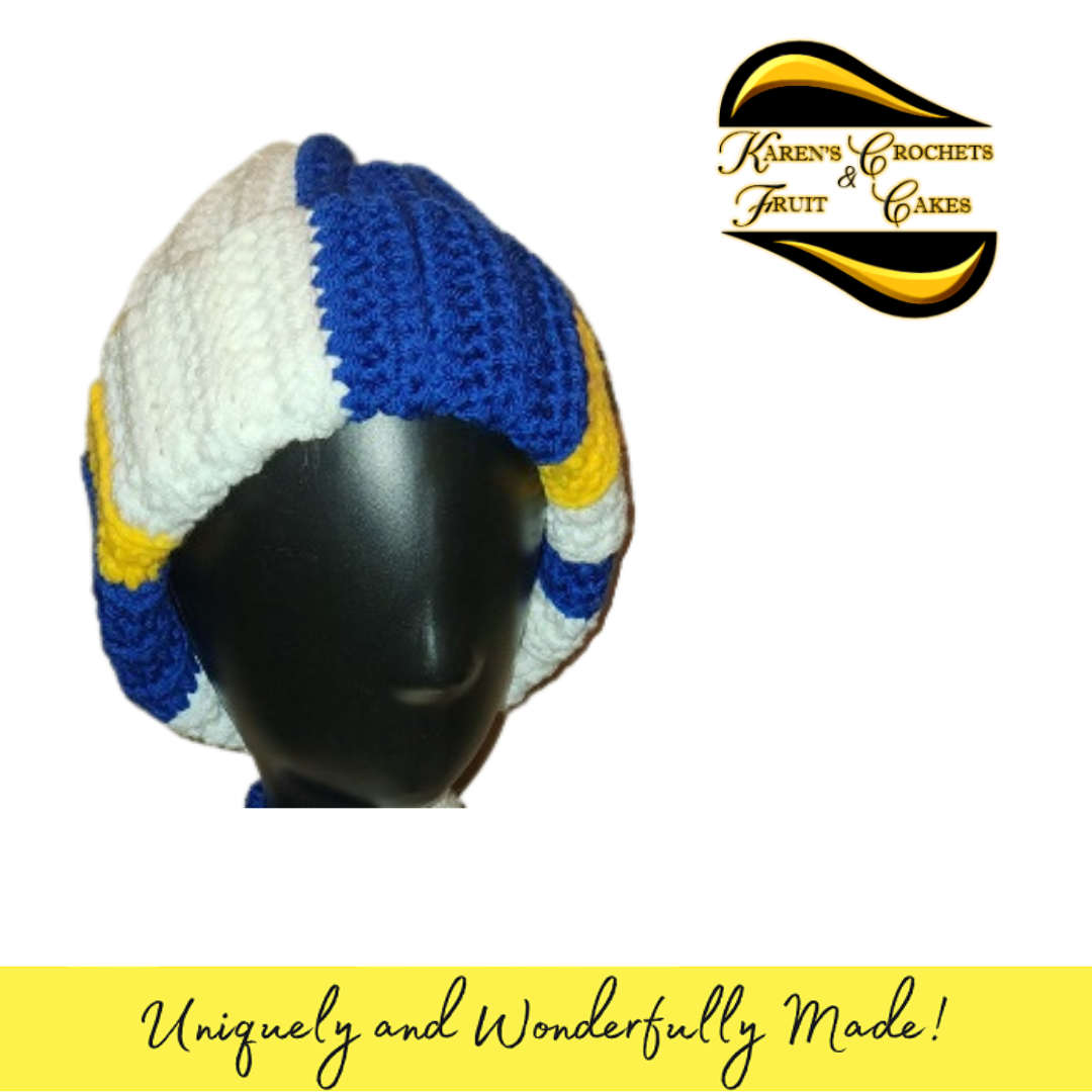 Blue, Gold, and White Hat & Scarf